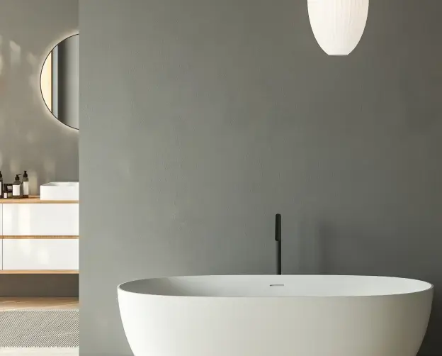 Skapa moderna, fogfria ytor med industriell betongkänsla. Vi applicerar microcement på golv och väggar i badrum och kök, utan att riva befintligt ytskikt.